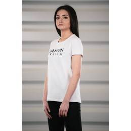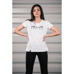This simple T-shirt for women is in all-purpose white thanks to which it can be a base for an array of stylizations and it should certainly be added to the wardrobe of any automotive lover. The short-sleeved T-shirt can be used with a training outfit or for casual wearing, too. The presented round-neck T-shirt draws the looks with a modern, but also simplified print of the brand of aerodynamic vehicle components, Maxton Design. This white T-shirt?s light fitting cut underlines your silhouette and gives immense comfort of use even all day long. This clothing article is 95% cotton and 5% elastin which allows it to be airy and nice to touch, and prevents it from stretching during washing or drying. This women?s T-shirt is a universal addition to your clothing and you cannot let it be amiss in your wardrobe.