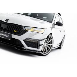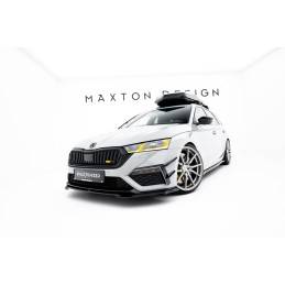 Maxton - Lame Du Pare-Chocs Avant V.2 + Ailerons Skoda Octavia RS Mk4 Noir Brillant